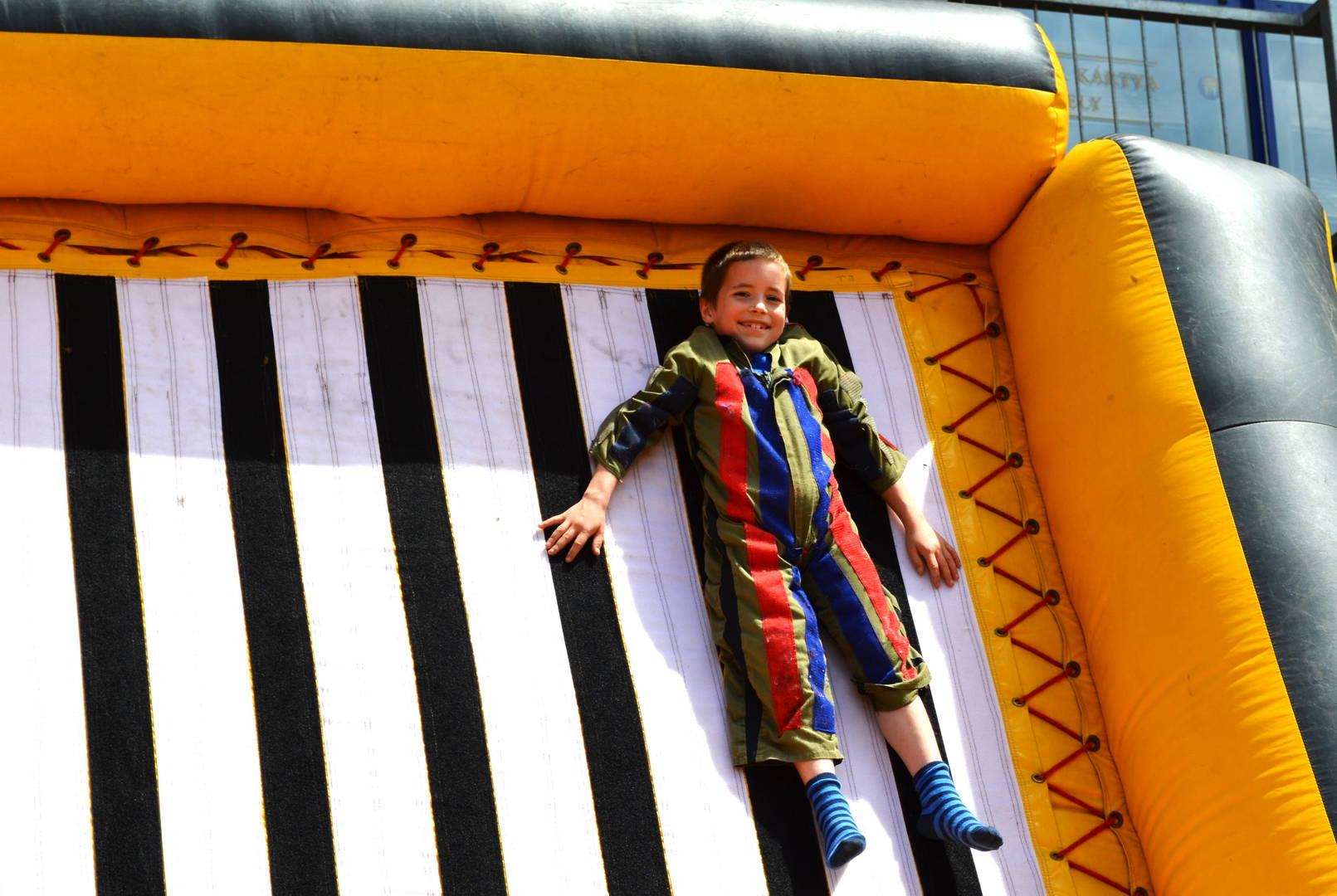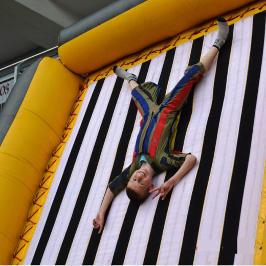 Közönségszórakoztató, látványos játék, melyet a nézők is élveznek. Egy speciális felfújható ugráló, ami trambulinnal van kombinálva. A játék használatakor egy speciális, tépőzáras ruhát visel a játékos. Többféle ruhaméret és szín közül lehet választani. A ruha felvétele után, a szőnyegről kell a játék felé futni, majd a trambulinról elrugaszkodva a piros dobbantót kihasználva a tépőzáras falra ugrani különböző pozitúrákban. A játékosok úgy fel tudnak ragadni a falra, akár a pórul járt légy a légyfogóba. A bátrabbak képesek szaltózásból felragadni a falra fejjel lefelé. A játékszer mászó falként is funkciónál, amikor a tapadást kihasználva mászik egyre feljebb és feljebb a gyerek. Mozgásra ösztönzi a lustákat, lefárasztja a mozgékonyakat, fejleszti a mozgás koordinációt, az izmokat.