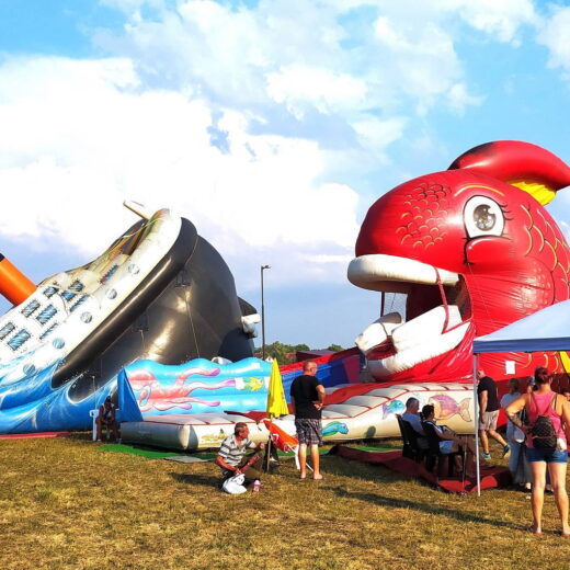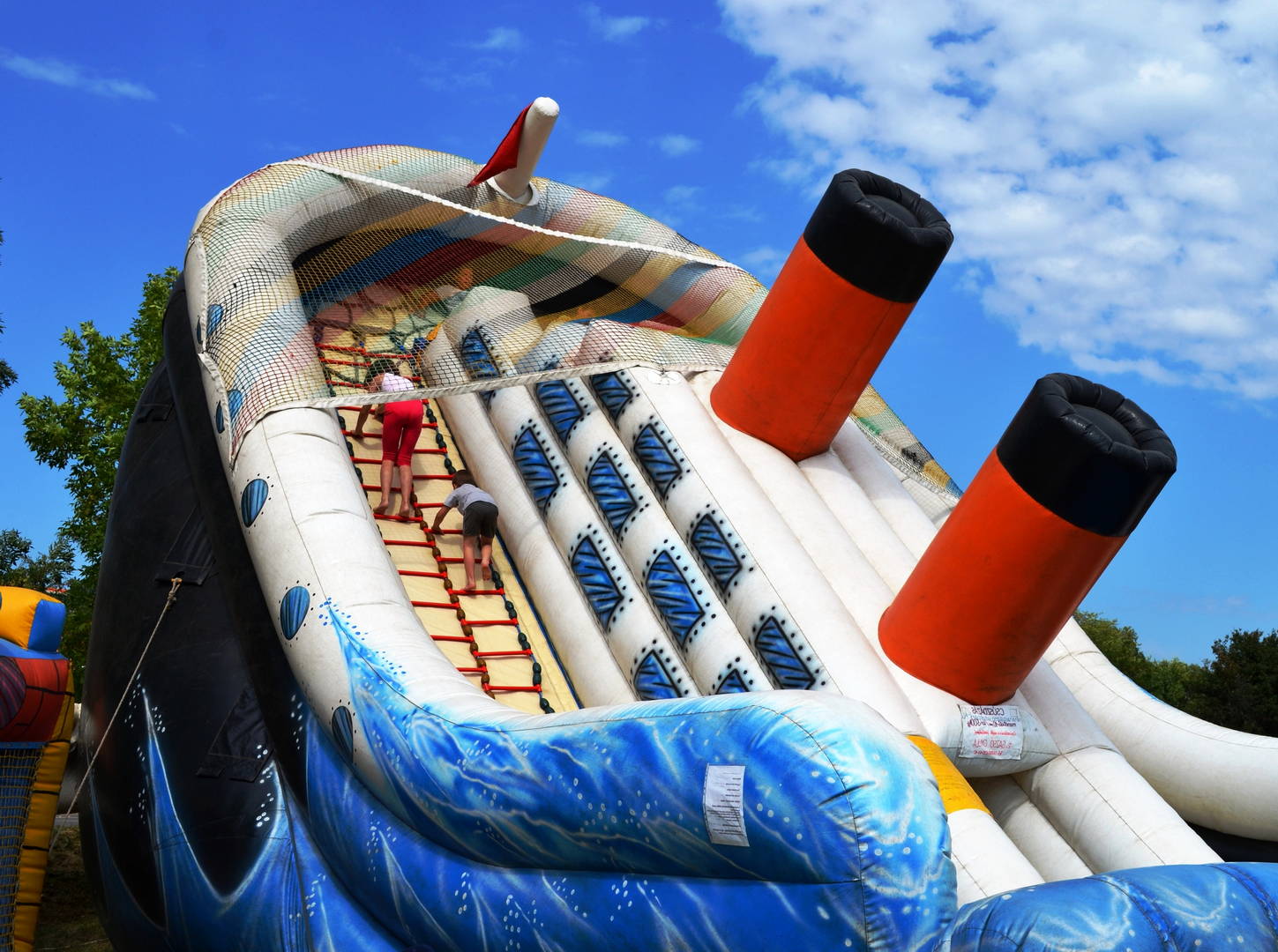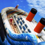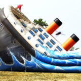 Sokoldalú, ügyességi játék kicsiknek és nagyoknak. A jéghegynek ütközött Titanicot ábrázolja süllyedés közben. Látványos játékszer, mely óriás méretével, harmonikus színeivel, tekintélyparancsoló megjelenésével emeli a rendezvények fényét. A látványt fokozza az élethűen kidolgozott hajótest, a kémények ill. a hajócsavarok kivitelezésének részletessége. A gyerekek két oldalról mászhatnak fel a csúszda tetejére. A kevesebb erőfeszítést igénylő oldal a játék jobb szélén található habszivacs létrán való mászással fedezhető fel. A másik oldalon pedig az izgalmat, kalandot kereső kicsik és nagyok juthatnak fel a magasból lelógatott kötél segítségével. A hegyi magaslatból teljes biztonsággal csúszhatnak le a középen elhelyezkedő alagútszerű csúszó részen. A csúszás izgalmát fokozza a játék extra magassága, meredeksége és a csúszás sebességének gyorsasága. A köteleken ill. a szivacslétrán történő felmászás fejleszti a gyerekek ügyességét, egyensúlyérzékét, izomzatát és koordinációs képességét. Játékos formába dolgoztatja meg az izmokat. Sorversenyek játszására is alkalmas a két oldalról történő mászás miatt.